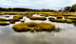 After peeling away from the influx of traffic, this week's Cape's arrivals, I unload my clothes, food, and supplies for the weeks ahead. Then I walk the dogs along the shore, the beach grass tall and swaying. The volume of the world quiets as I watch a single boat sailing silently on the bay's blue rim, a dark craft navigating the edge.